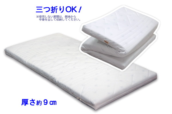 ・ 厚さ約9cm! かさ高ボリュームタイプの敷きふとん。 マットレスのように厚みがあり、しっかりとした硬さで、バランスよく安定した寝姿勢をサポートします。
