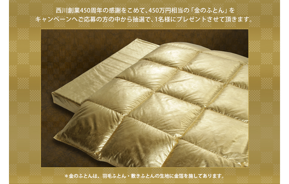 クイズに答えて 450万円相当 金の布団を当てよう!」